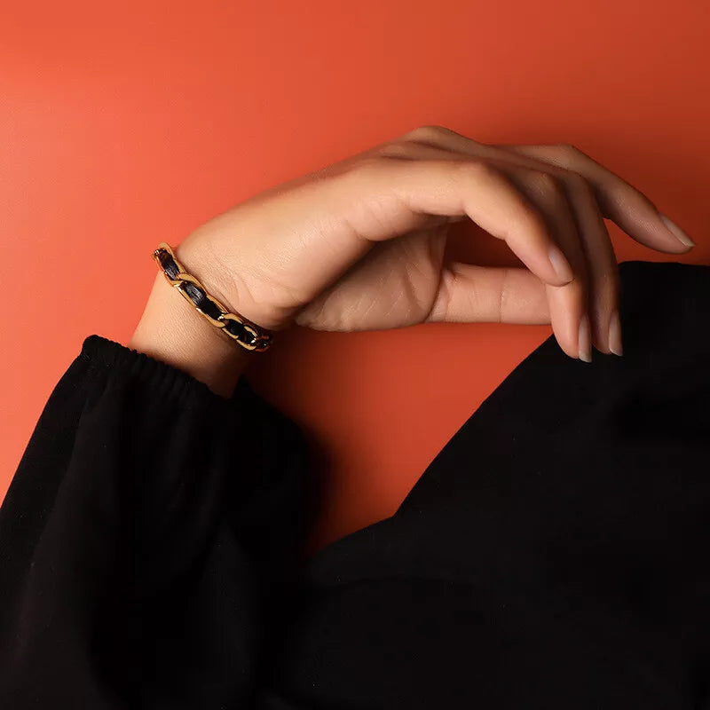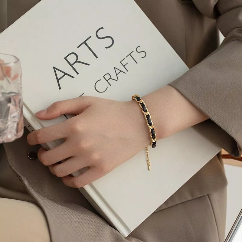 18K Gold Braided Leather Bracelet – 7mm