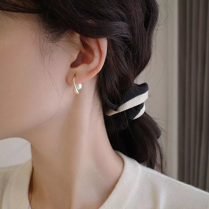 Elegant Waterdrop Pearl Stud Earrings – 18K Gold Plated for Women