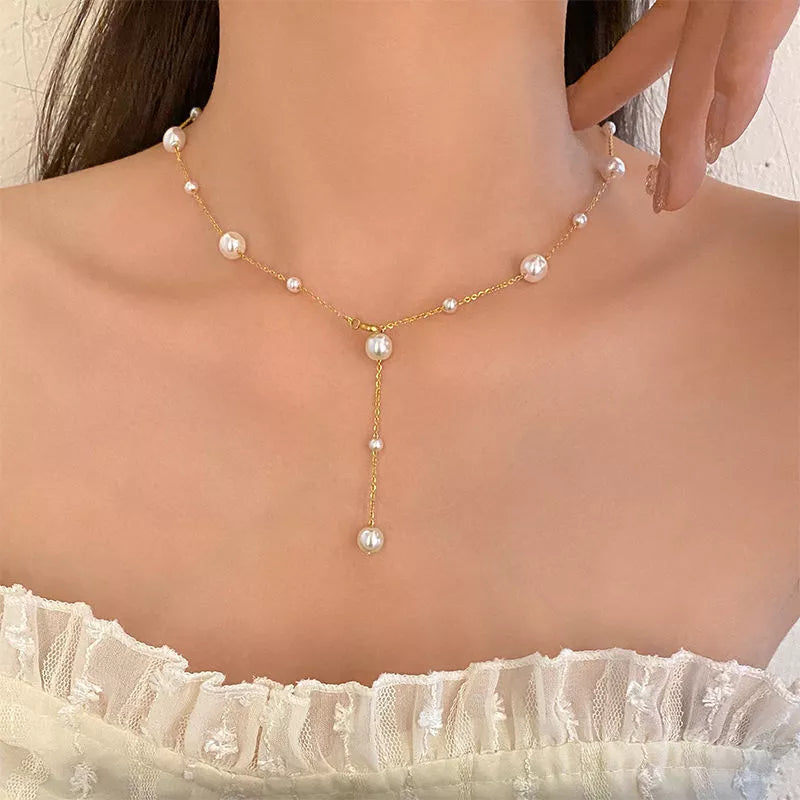 Gold Pearl Tassel Gold Necklace – 18K Stainless Steel